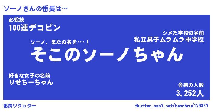 | 意味不明あだ名 | 『ペロリンソーノ』『ソーノフォーエバー』 |