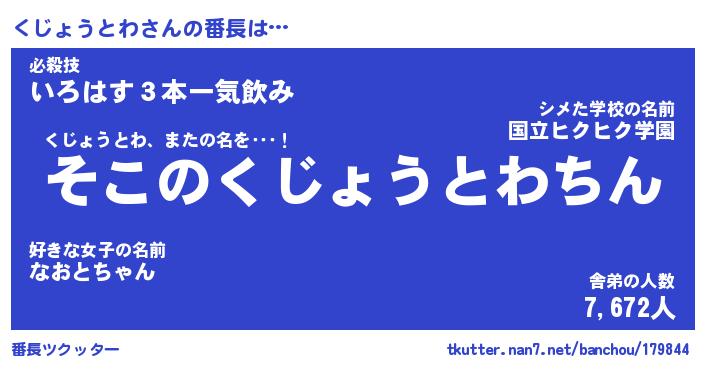 | 伝説のあだ名 | 『不死鳥のスナイパーくじょうとわ』 |