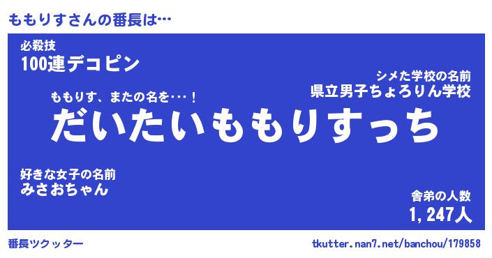 | 肩書あだ名 | 『ももりす御曹司』『ももりす総理大臣』 |