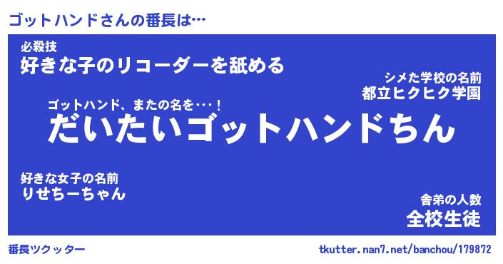 | ヒーロー風カッコイイあだ名 | 『スーパーゴットハンド』『暗黒騎士ゴッ』 |