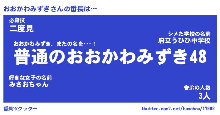 | 男性向けラノベタイトル風あだ名 | 『オオカワミズキアートオンライン』 |