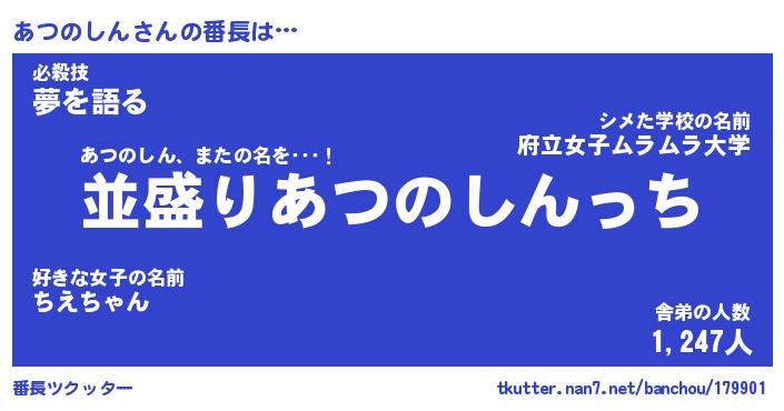| 肩書あだ名 | 『あつのしんCEO』『あつのしん国家主席』 |