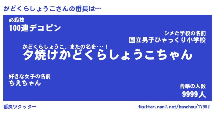 | 伝説のあだ名 | 『封印されし竜騎士かどくらしょうこ』 |