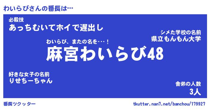 | 肩書あだ名 | 『わいらび御曹司』『わいらび国家主席』 |