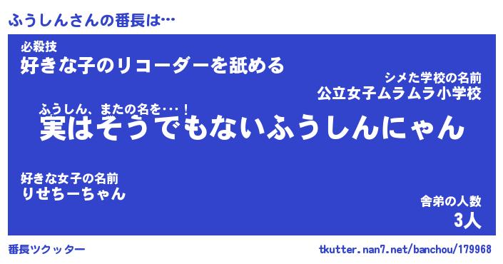 | ヒーロー風カッコイイあだ名 | 『スーパーフウシン』『暗黒騎士フウ』 |