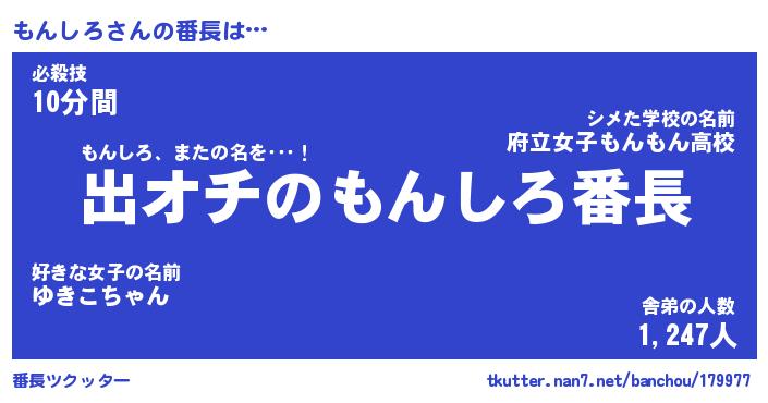 | 意味不明あだ名 | 『ペロリンもんしろ』『永久保存もんしろ』 |