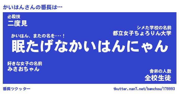 | 伝説のあだ名 | 『封印されしスナイパーかいはん』 |