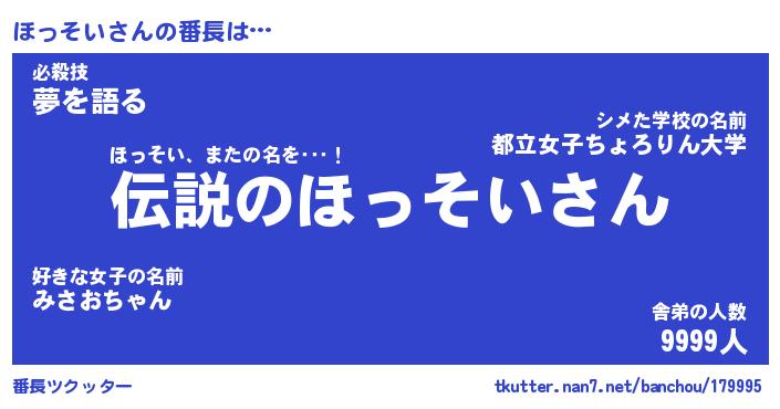 | 伝説のあだ名 | 『伝説の竜騎士ほっそい』 |