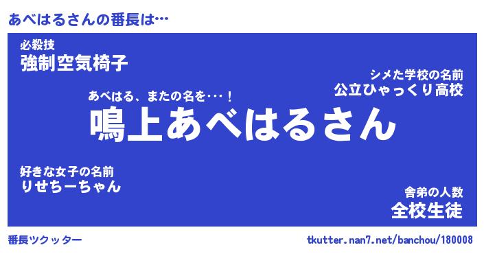 | 肩書あだ名 | 『あべはる店長』『あべはる総理大臣』 |