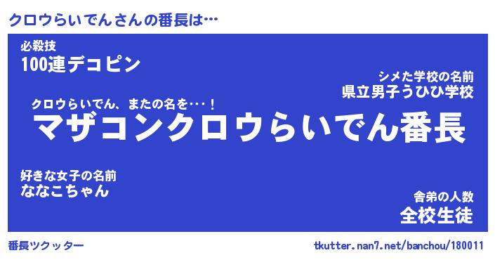 | 2回繰り返すあだ名 | 『クロクロ』『ククロロ』『うろうろ』 |