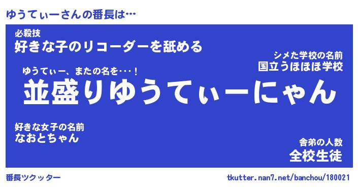 | ヘコむあだ名 | 『ゆうもー』『酢こんぶ』『ゆうを』 |