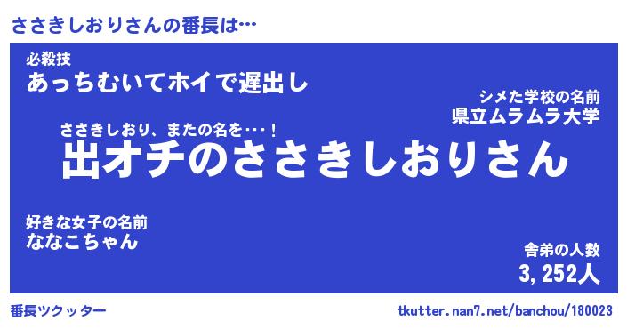 | 恥ずかしいあだ名 | 『プリティーささきしおり』『ささっちょ』 |