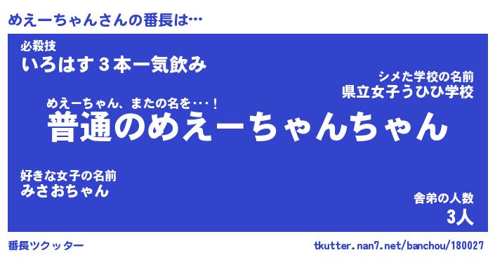 | ヘコむあだ名 | 『めえもー』『なまこ酢』『めえお』 |