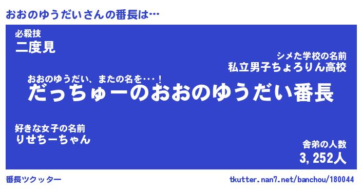 | 2回繰り返すあだ名 | 『おおおお』『おおおお』『きんきん』 |