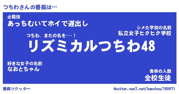 | 意味不明あだ名 | 『ペロリンつちわ』『つちわフォーエバー』 |