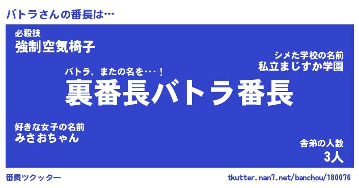 | ヒーロー風カッコイイあだ名 | 『スーパーバトラ』『ウルトラバトラマン』 |