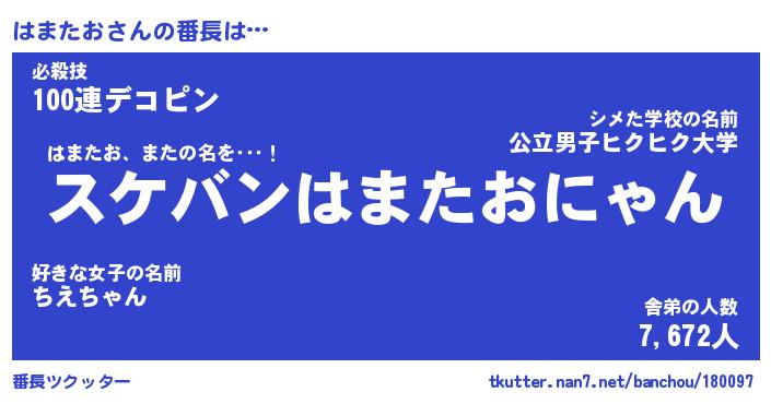 | ヒーロー風カッコイイあだ名 | 『スーパーハマタオ』『天弓騎士ハマ』 |