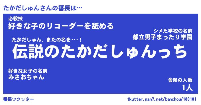 | 伝説のあだ名 | 『伝説の竜騎士たかだしゅん』 |