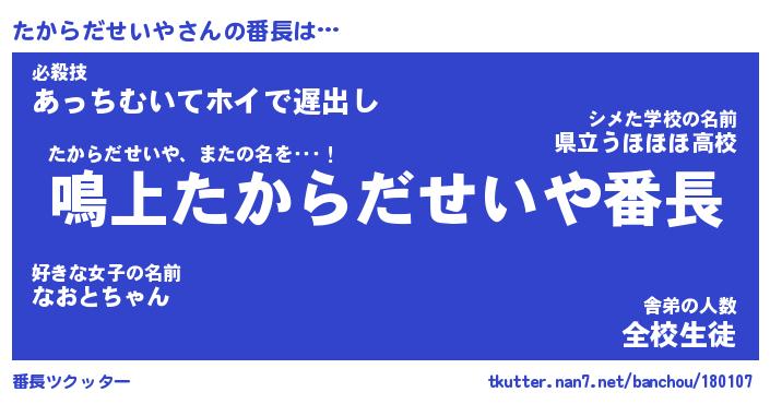 | ツイッター | たからだせいやさんのツイッターID『dendenmushi_nyan』 |