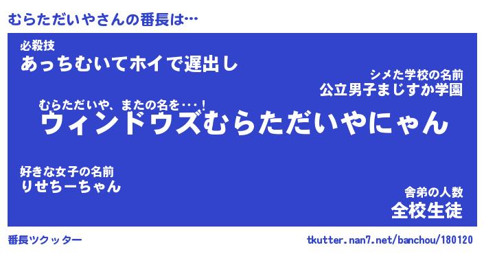 | ヒーロー風カッコイイあだ名 | 『スーパームラタダイヤ』『魔戒騎士ムラ』 |