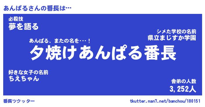 | 肩書あだ名 | 『あんぱる店長』『あんぱる大統領』 |