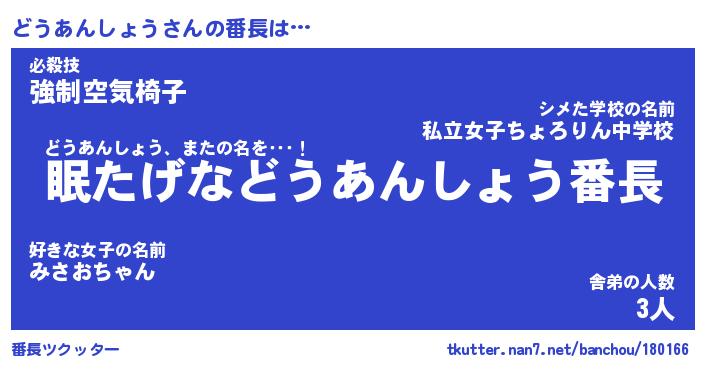 | ポケモン風あだ名 | 『ドウチュウ』『ドウアダネ』 |