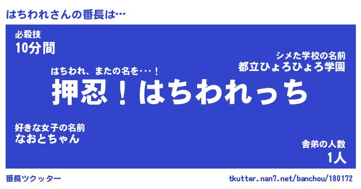 | 意味不明あだ名 | 『ペロリンはちわれ』『永久保存はちわれ』 |