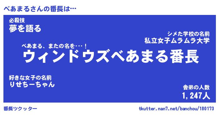 | 肩書あだ名 | 『べあまる店長』『べあまる総理大臣』 |