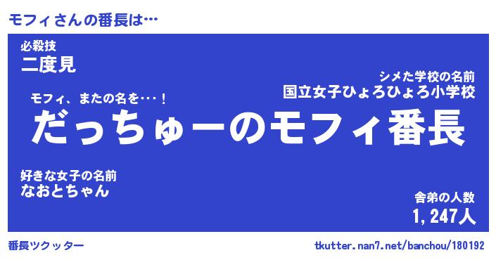 | 意味不明あだ名 | 『ペロリンモフィ』『モフィフォーエバー』 |