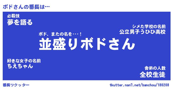 | ヘコむあだ名 | 『ボドにー』『豆乳』『ボドお』 |