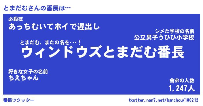 | ヘコむあだ名 | 『とまもー』『牛乳』『とまっぺ』 |