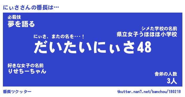| ヘコむあだ名 | 『にぃもー』『牛乳』『にぃっぺ』 |