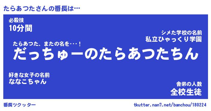 | 肩書あだ名 | 『たらあつた社長』『たらあつた総理大臣』 |