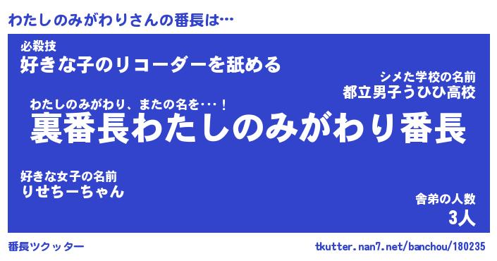 | ヘコむあだ名 | 『わたもー』『酢こんぶ』『わた太郎』 |