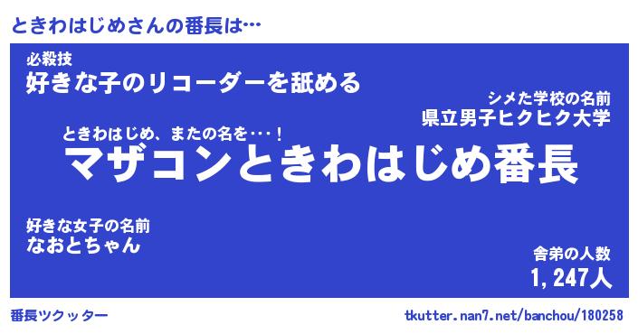 | 恥ずかしいあだ名 | 『プリティーときわはじめ』『ときっちょ』 |