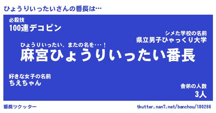 | ピコ太郎風あだ名 | 『ヒコ史郎』『ピヒ五郎』『ヒョ太郎』 |