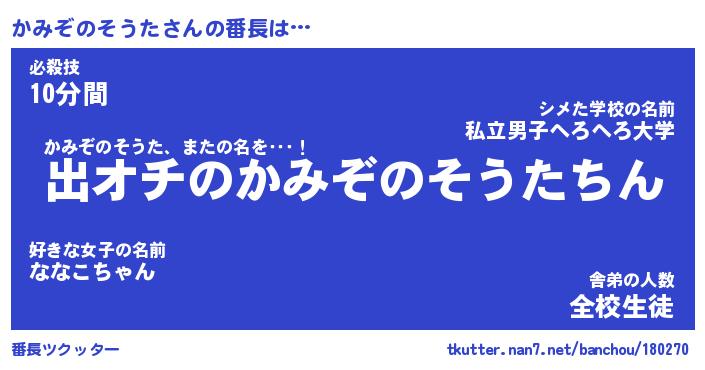 | ヘコむあだ名 | 『かみもー』『牛乳』『かみ太郎』 |