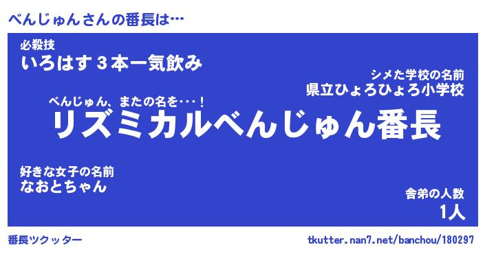 | 伝説のあだ名 | 『伝説のスナイパーべんじゅん』 |