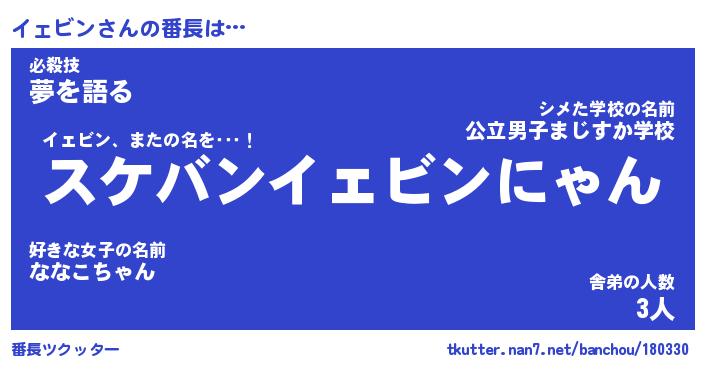 | ファンタジー風あだ名 | 『イェフェル』『エターナルイェビンー』 |