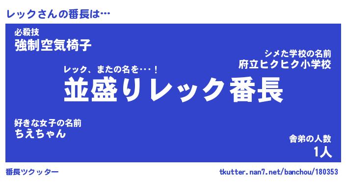 | 意味不明あだ名 | 『ペロリンレック』『レックフォーエバー』 |
