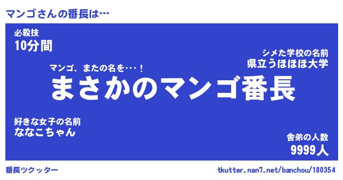 | ヒーロー風カッコイイあだ名 | 『スーパーマンゴ』『ウルトラマンゴマン』 |