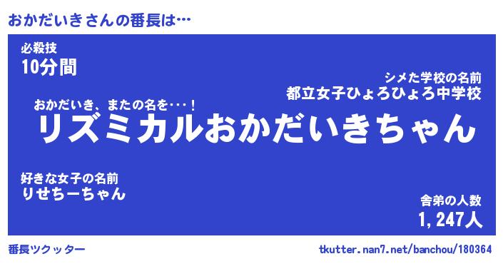 | 2回繰り返すあだ名 | 『おかおか』『おおかか』『なあなあ』 |