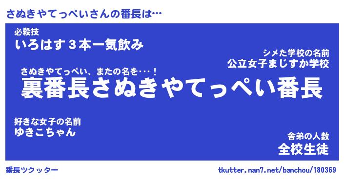 | 肩書あだ名 | 『さぬきやてっぺい店長』 |