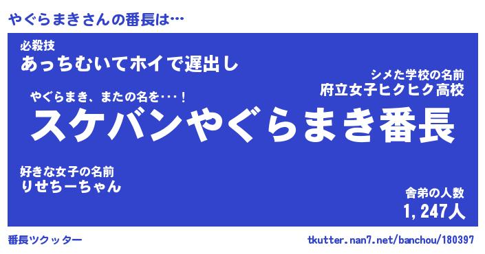 | ヒーロー風カッコイイあだ名 | 『スーパーヤグラマキ』『銀牙騎士ヤグ』 |