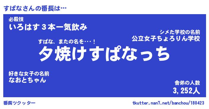 | 意味不明あだ名 | 『ペロリンすぱな』『すぱなフォーエバー』 |