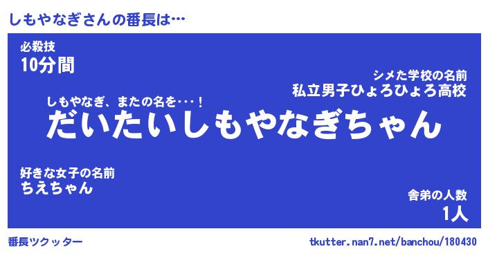 | ファンタジー風あだ名 | 『シモフェル』『エターナルシモヤナギー』 |