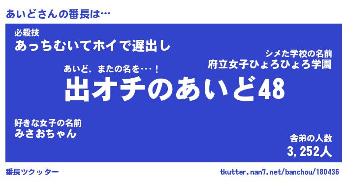 | 伝説のあだ名 | 『伝説のスナイパーあいど』 |
