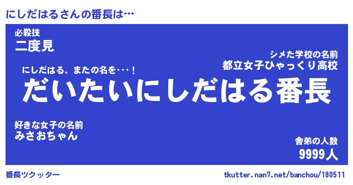 | ファンタジー風あだ名 | 『ニシフェル』『エターナルニシダハルー』 |
