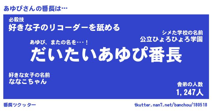 | ヒーロー風カッコイイあだ名 | 『スーパーアユピ』『ウルトラあゆぴマン』 |