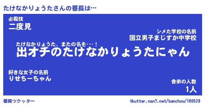 | 2回繰り返すあだ名 | 『たけたけ』『たたけけ』『ぐちぐち』 |